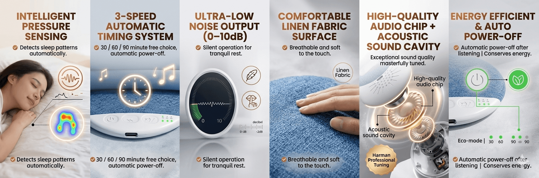 • Built-in Natural White Noise — বাইরের শব্দ ব্লক করতে সাহায্য করে